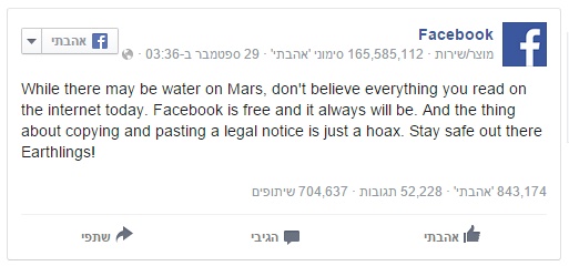 וכנראה שהדבר כל כך נפוץ שפייסבוק אפילו פרסמה תגובה לגביי הפוסטים האלה וציינה שבגדול הכל שטויות…